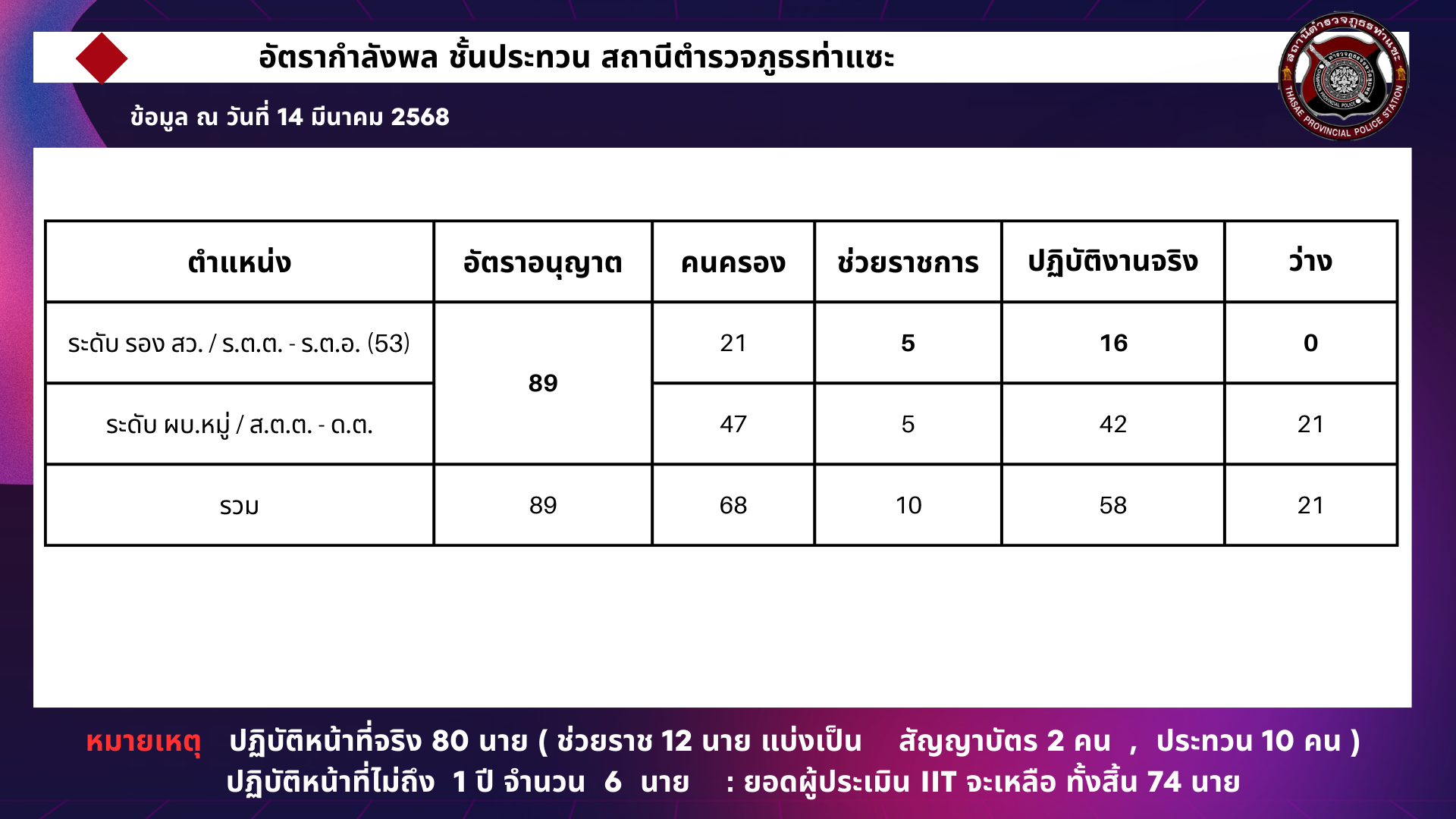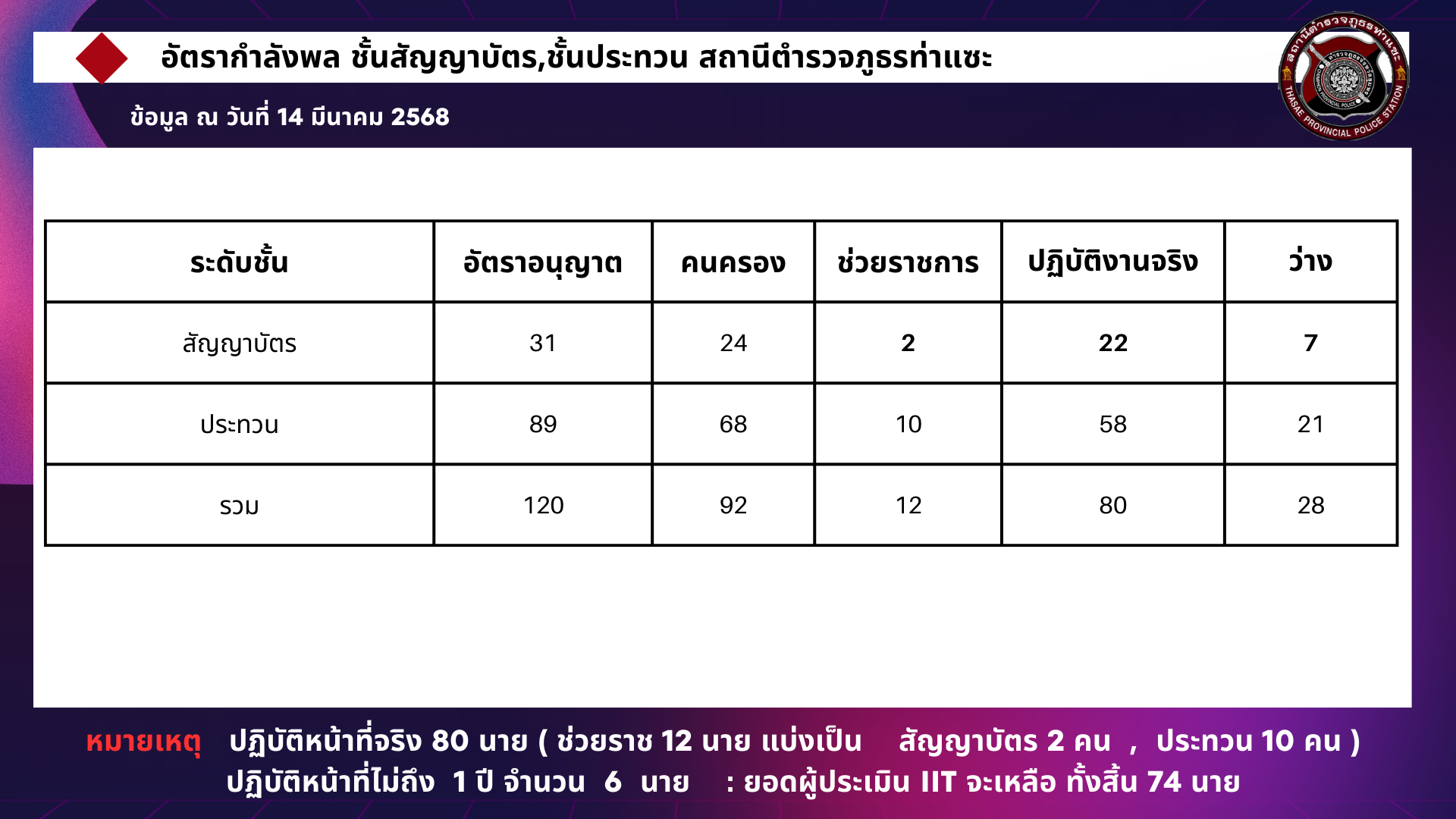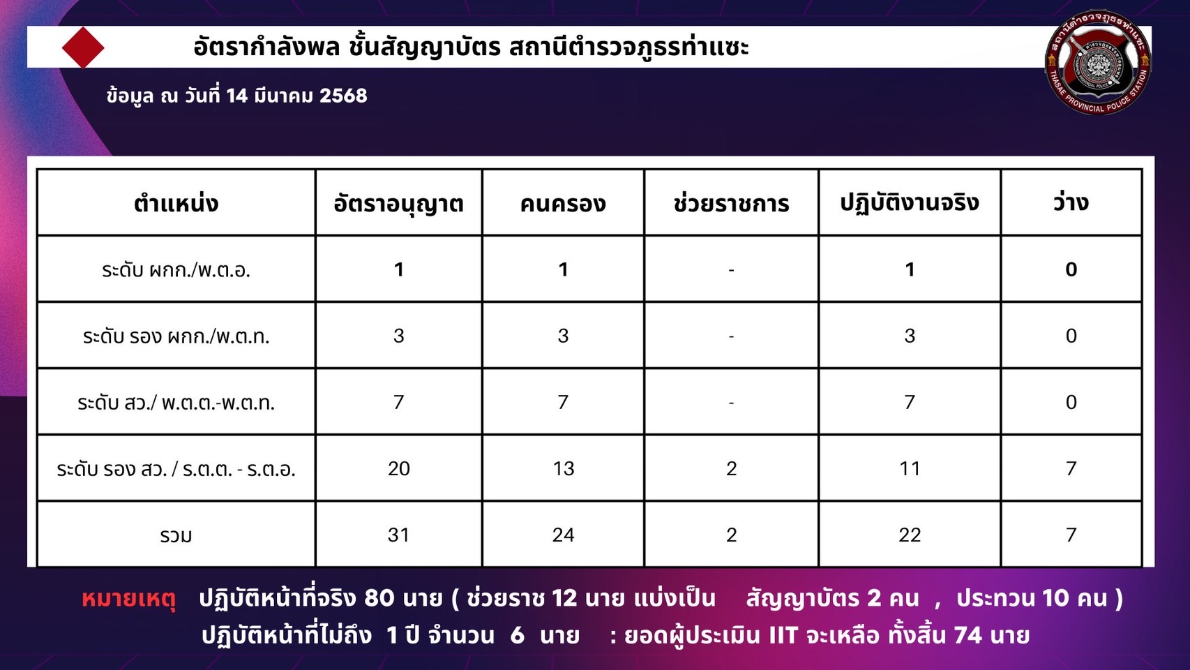 อัตรากำลังพลสถานีตำรวจภูธรท่าแซะ
